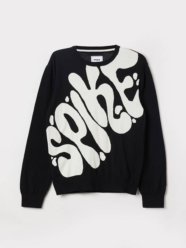 MAX Solid Round Neck Casual Boys Black Sweater