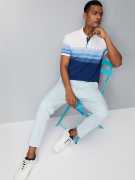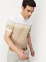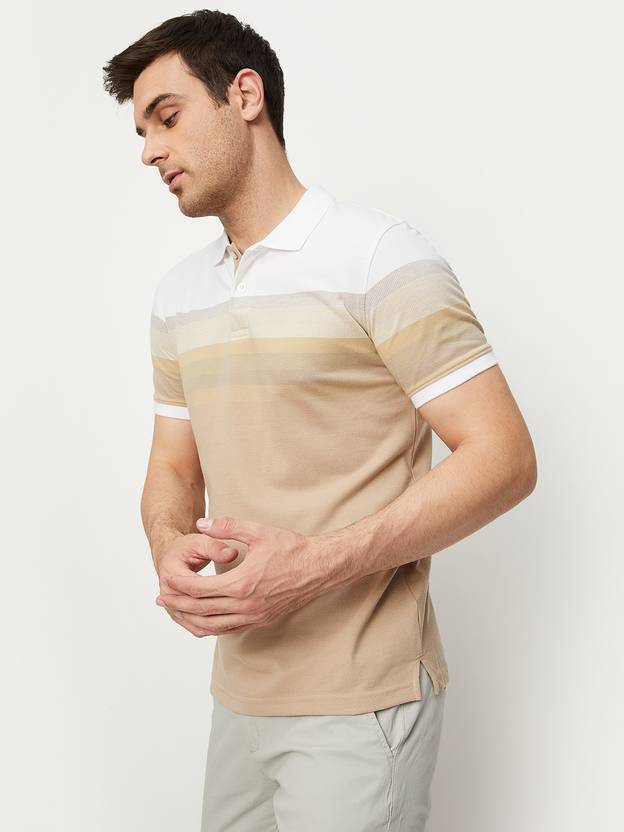 MAX Striped Men Polo Neck Beige, White T-Shirt