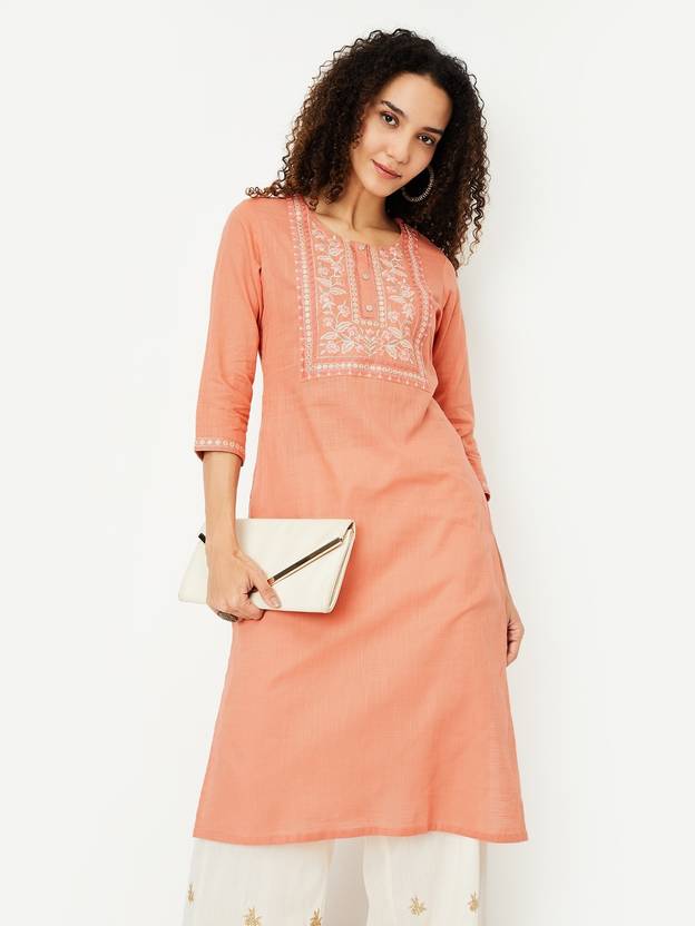 MAX Women Printed A-line Kurta (Orange)