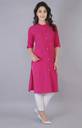 Women Solid Viscose Rayon Frontslit Kurta (Pink)