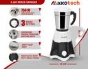 Maxotech ZACK 750 W Mixer Grinder (PRO Powerful Hybrid 100% Copper Motor | 4 Jars | White, Black)
