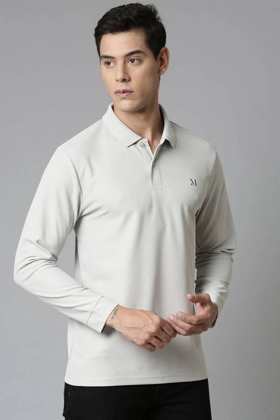 Maxzone Men Solid Polo Neck Polyester White T-Shirt