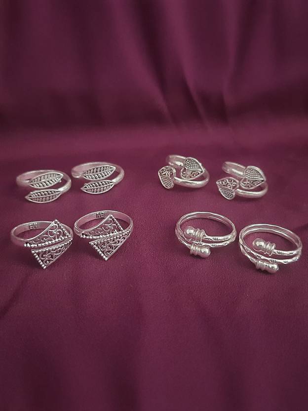 MAYA IMPEX Silver Tone Adjustable Toe Ring Women (4 Pairs Combo) Alloy Silver Plated Toe Ring Set