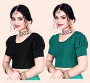 This stylish blouse is crafted from a blend of cotton and lycra, offering a comfortable and stretchable fit that moves with you. It features balloon-style elbow sleeves that add a touch of elegance and flair, while the round neck design creates a classic and versatile look. With a length of 14 inches, it provides a chic, cropped silhouette that's perfect for pairing with high-waisted bottoms. Ideal for both casual and semi-formal occasions, this blouse combines comfort and fashion effortlessly.