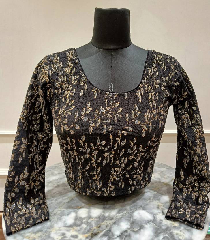 Elevate your wardrobe with this chic blouse crafted from stretchable lycra fabric. The round neck design offers a classic and flattering silhouette, while the full sleeves provide a touch of elegance and versatility. The lycra material ensures a comfortable, form-fitting shape that moves with you, making it perfect for both casual and formal occasions. Embrace style and comfort with this must-have addition to your collection.