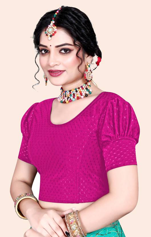 This elbow sleeve dobby blouse crafted from a luxurious cotton lycra blend offers a perfect blend of comfort and style. With a fabric designed for both flexibility and breathability, it ensures all-day ease. The blouse features an elegant round neck design, adding a touch of sophistication to your ensemble. With a blouse length of 15 inches, it strikes a balance between trendy and modest, making it suitable for various occasions. Whether paired with a saree or a skirt, this blouse is sure to elevate your look with its understated charm and versatility.