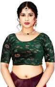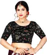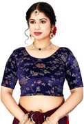 STRETCHABLE VELVET BLOUSE, ELBOW SLEEVE, FOIL PRINT AND ZARI WORK