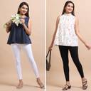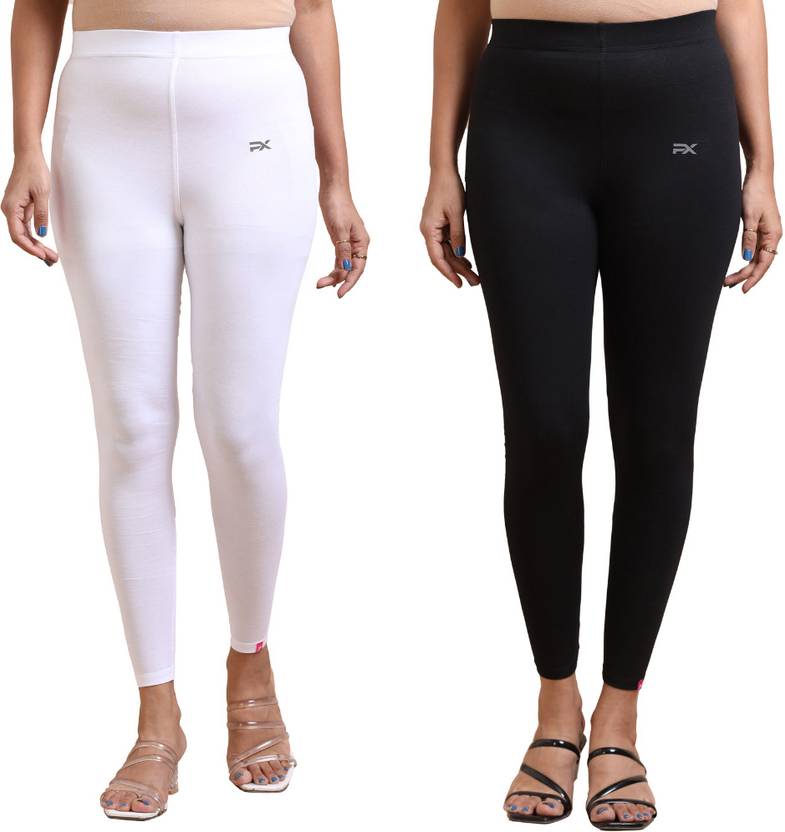 Mayaval Ethnic Wear Legging (White, Black, Solid)