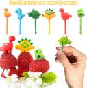 CARTOON DINOSAUR FRUIT FORK SET: Including 6 fruit fork of cute cartoon dinosaur design, a great tableware and decor when parpare party for kids, practical tools in bento box. Let kids fruit time be more joyful with lovely fruit fork. Not just can used for daily meal, also a nice serveware on kids party.FOODGRADE PLASTIC MADE: Made of premium food grade plastic, safe for kids to use, no BPA, durable to use, not easy to deform or damaged. Heat resistant up to 80掳C.EASY AND SAFE TO USE FOR KIDS: About 4-6cm/1.57"-2.36" in length. The grip handles are made of cute cartoon dinosaur shape with lovely emoj, proper size is just perfectly for little hand to grip, easy to use.SAFE ROUNDED TIP DESIGN: For safe usage, the whole fork has no sharp edge, and tips are blunt and round which can make sure it can poke the fruit up and also safe for kids to use.LET KIDS LOVE FRUIT AND VEGETABLE: Lovely tableware on food definitely a brilliant trick to make kids love to eat vegetables or fruit. Especially for those kids who say no to fruit or vegetables of amount nutrition and Vitamins, this set of dinosaur fruit fork gonna be great helper to make kids fall love with fruit and vegetables.