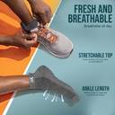 Material: Combed Cotton, Half Terry, Breathable Mesh, Cushioned Bottom, Odour-Free, Reinforced Heel & Toe, Moisture Absorbent, Comfortable Grip