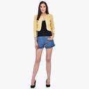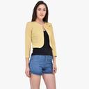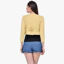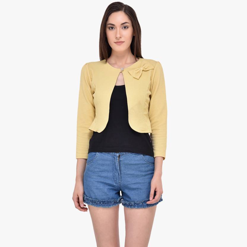Enhance your summer statement with this jacket from Mayra. Wear it as a short or a waist-length jacket. Fashioned with raised collar, this full-sleeved jacket will look gorgeous on you when teamed with a beige Jacket , a pair of jeggings and heel