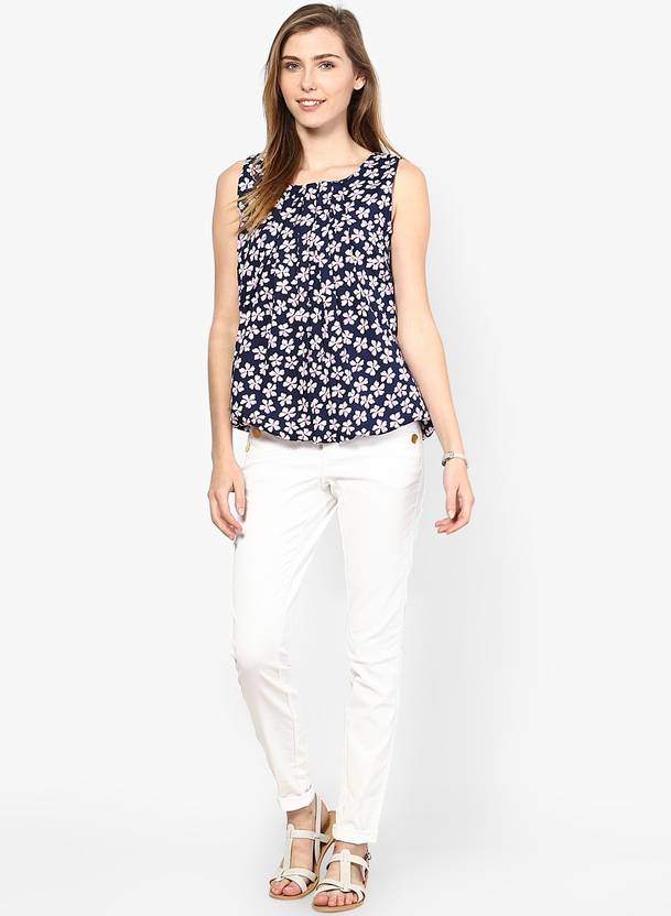 MAYRA Party Sleeveless Floral Print Women Dark Blue Top