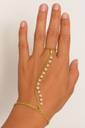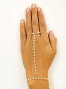Add a touch of sophistication to your look with this beautifully crafted gold-plated finger ring bracelet, designed as a stylish hand harness. The bracelet features a delicate chain connected to a matching finger ring, highlighted by a graceful line of white pearl beads that bring elegance and charm to your outfit.