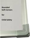 Clean-erase 0.6mm even-tone smooth surface off-white satin finish, Stable warp-free 9mm board for support, smooth and sleek aluminium frame with child-safe rounded corner, Inbuilt hooks at all corners enabling wall-mounting - vertical or horizontal, Suitable for homes, kindergarten schools and colleges, offices, corporates and retail outlets