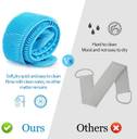 Gentle Exfoliation: The silicone shower body scrubber extends 1cm dense brush head, penetrates into pores to clean dirt, and freshens. The silicone back scrub is not too coarse to irritate sensitive skin and it ensures anti-slip and comfortable grip allowing you to massage and clean your back and other hard-to-reach body areas with ease.