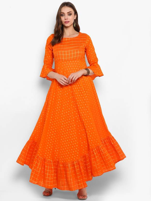 Women Solid Cotton Blend Anarkali Kurta (Orange)