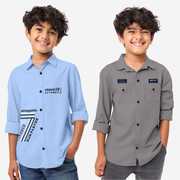 Introducing our Boys' Cotton blend Designer Shirts – the perfect blend of comfort, style, and durability! Crafted from premium fabric, this shirt guarantees long-lasting wear without any change in fabric or color, even after multiple washes. Easy to care for, simply toss it in the wash and it's good to go! With its timeless colors and simple design, it's versatile for any occasion – from school and everyday play to special events. The full sleeves provide added warmth during cooler days. Available in sizes for ages 5-15 years to suit every growing child. At unbeatable value. Elevate your child's wardrobe with confidence – upgrade to our Boys' Designer shirts today!