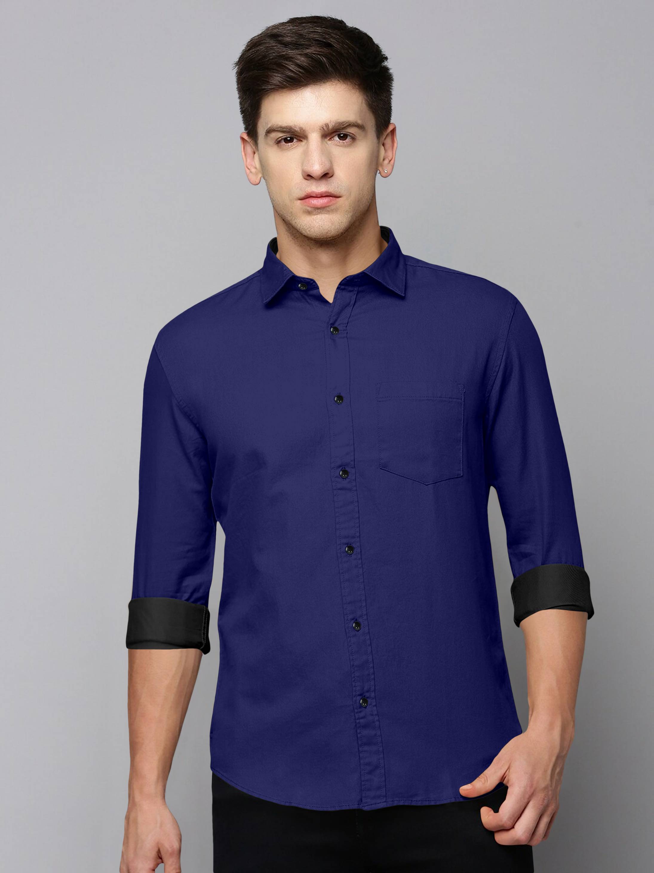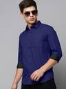 VIVESCO Men Solid Casual Dark Blue Shirt