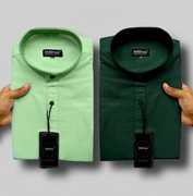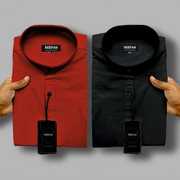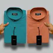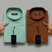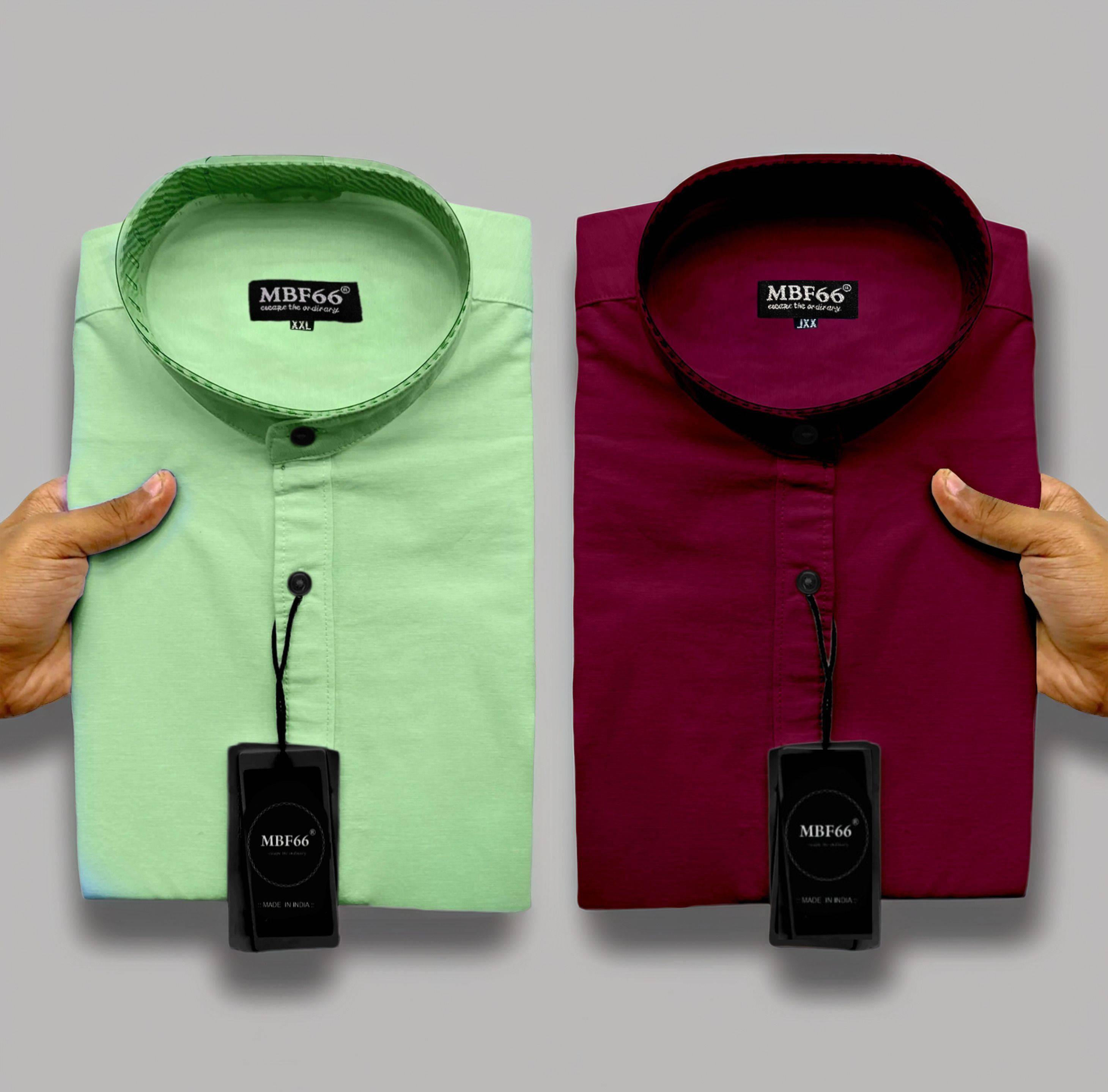 MBF66 Men Solid Casual Maroon, Green Shirt (Pack of 2)