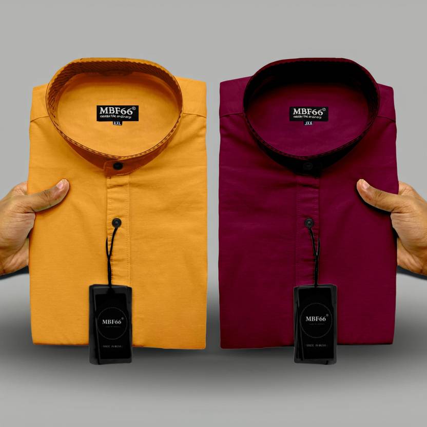 MBF66 Men Solid Casual Maroon, Orange Shirt (Pack of 2)