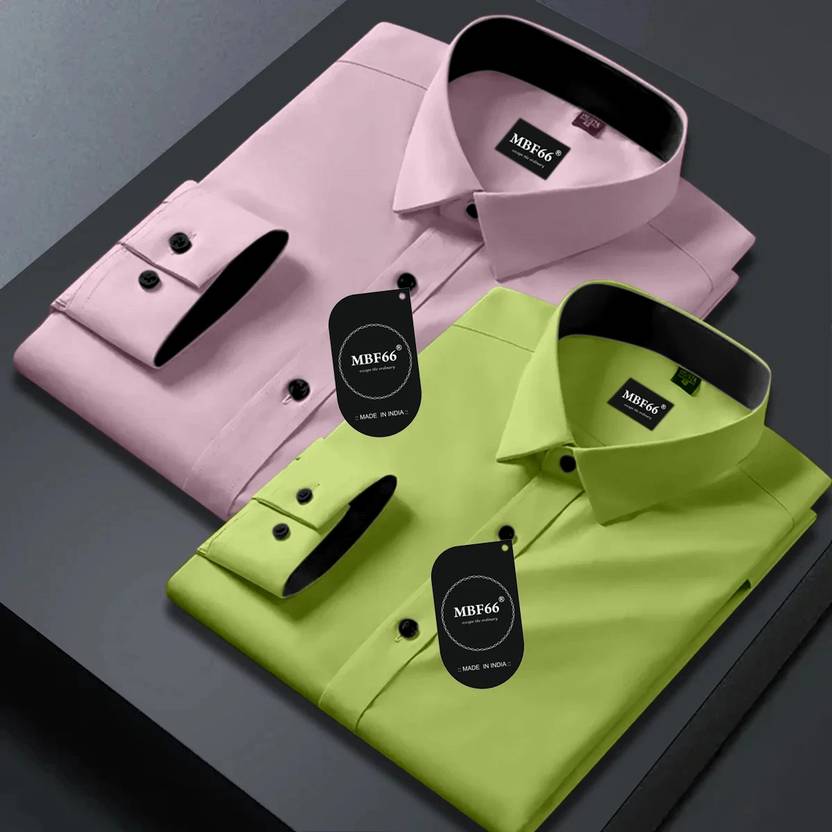 MBF66 Men Slim Fit Solid Spread Collar Casual Shirt (Pack of 2)