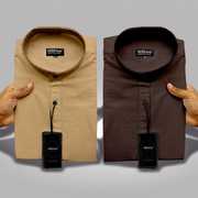 MBF66 Men Solid Casual Multicolor Shirt (Pack of 2)
