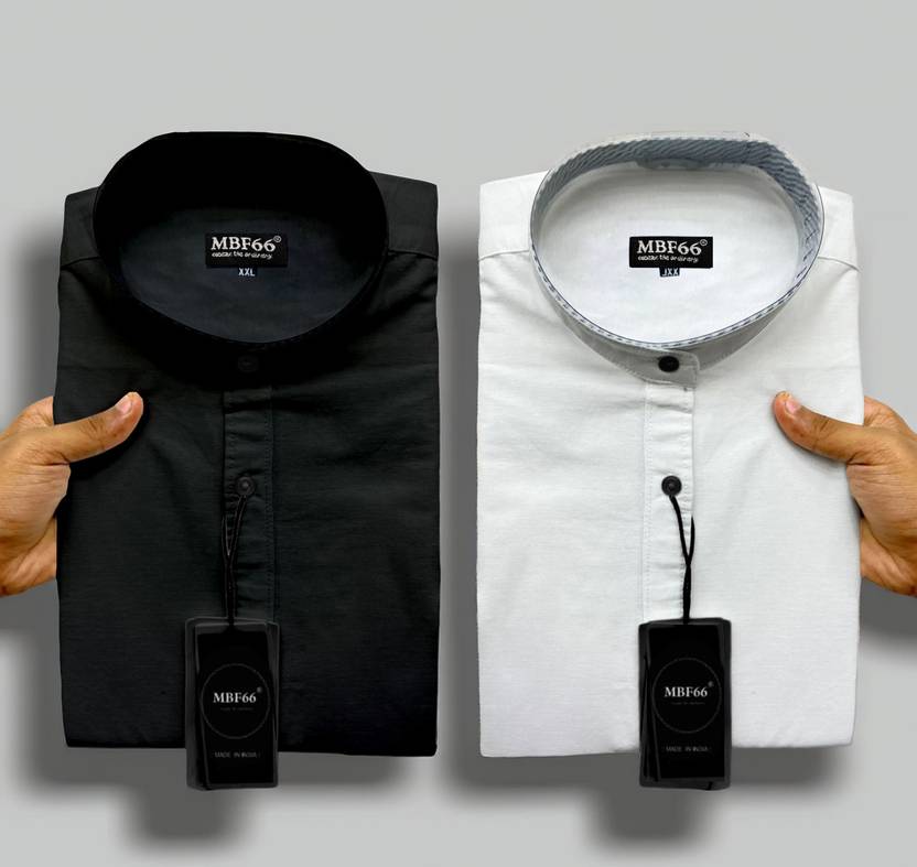 MBF66 Men Solid Casual White, Black Shirt (Pack of 2)