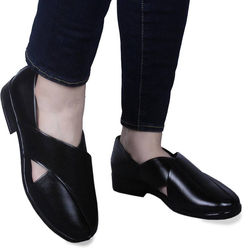 Mens Black Peshawari Traditional closed-toe leather sandal