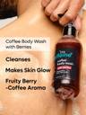 Prepare to treat your senses, as you get drenched in this frothy berries & coffee body wash. This unique & would-be cult-classic body wash bugs off dirt, grime, and impurities, as you slather the luxurious lather over your body. Filled with superfood Coffee at its heart, it deeply cleanses the skin, and restores its moisture. The irresistibly-rich fruity Coffee aroma of this body wash perks up your mood and leaves your senses thirsty for more. This non-drying & sulphate-free body wash is your perfect shower buddy for soft & glowing skin. The lavish shower experience is further accentuated by the skin-friendly ingredients on offer. The addition of luscious Raspberry, Cranberry, and Strawberry in the body cleanser hydrates skin, moisturizes & softens it, and leaves it with an improved glow. Coffee Extracts & Caffeine help refresh & energize the skin, reduce inflammation, and tone & soothe the skin naturally. Last but definitely not the least, Vitamin E provides protection against sun & pollution damage, nourishes the skin, and leaves it feeling soft & supple. Formulated to suit all skin types, Coffee Body Wash with Berries is gender-neutral, and free from Paraben, and SLS. It is FDA Approved, Dermatologically Tested, Made Safe, PETA Certified, Cruelty-Free & 100% Vegan, and with Zero Plastic Footprint.