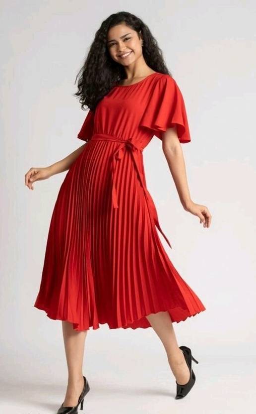 MD Fashion Women A-line Red Midi/Calf Length Dress
