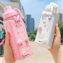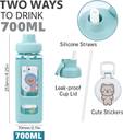 MDealz Kids Water Bottle With Straw | School Use Cartoon Square Bottle 700 ml Water Bottle (Set of 1, Pink)