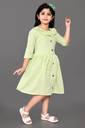 Girls Midi/Knee Length Casual Dress (Green, 3/4 Sleeve)