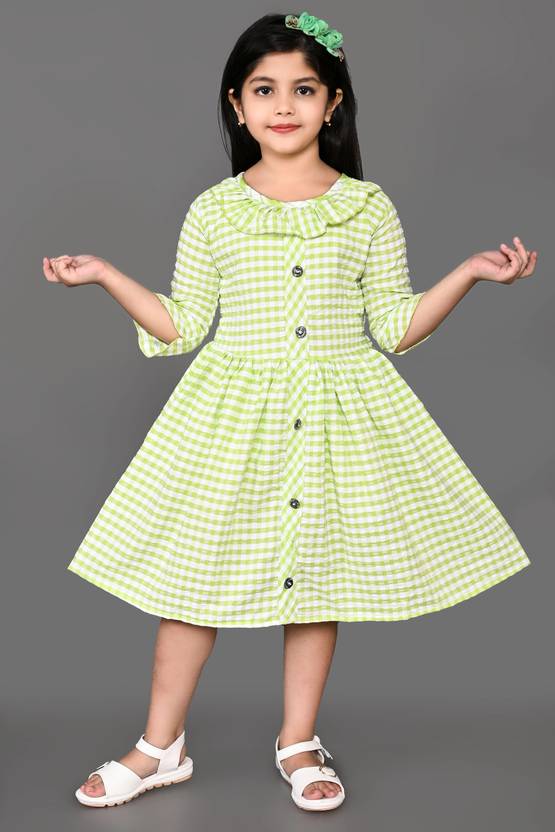 MDRESS Girls Midi/Knee Length Casual Dress (Green, 3/4 Sleeve)