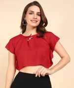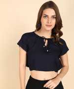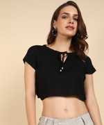 The Model Is Wear A Medium Size Top ,And This Top Size Is Perfect For A Model Size Measurement Women. Height – 5’7” Bust – 33” Waist – 28” and In This Top Have Adjustable Loops In Back.