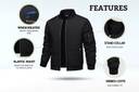 Featuring a solid pattern, this men's bomber jacket embodies timeless fashion with a sleek and modern twist. And, the clean lines and versatile pattern make it a staple addition to any wardrobe, seamlessly blending with a variety of styles and occasions. Sporting a metal zip closure, this jacket ensures easy wearability and convenience. Full sleeves with ribbed cuffs provide a snug and comfortable fit while keeping the chill out. And, up to two side slant hand pockets with secure zip closures are ideal for carrying essentials on the go. Additional utility is provided by a pen pocket on the sleeve, also equipped with zip closure, and a discreet inner pocket for added storage. Moreover, the elastic waistband and stand collar enhance the fit, which makes this jacket both practical and stylish. Also, acting as a windcheater, it offers an extra layer of protection during breezy conditions.