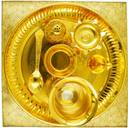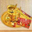 This Golden Color Plated Pooja Thali Set Comes in with beautiful golden-ware Gift Box. This Puja Thali gives Complete look to your Ahoi Ashthami pooja. This Golden Color Plated Pooja Thali 10inch Set with Calender, Roli, Story Book, Lota, ghanti, Agarbatti Stand, Spoon, Deepak Stand comes with all the components and Gift Box. It can be a Beautiful addition to your Ahoi Pooja and to your home. This Ahoi Ashthami Pooja Thali Engraved Lakshmi Ganesh Design is also used for several occasions like – Navrati, Diwali,Housewarmining, karwa chauth, wedding, Rakhi, anniversary and it also turned into wonderful Gift like - diwali gift, return gift, wedding gift, housewarmining gift. It is durable and its quality is safe for use. This would be a perfect addition to your house temple.