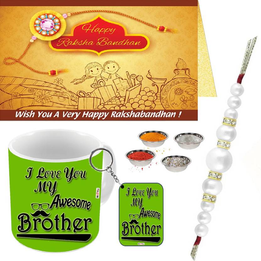 ME&YOU Presents beautiful Gift Set of Card, Printed Mug, Keychain,Rakhi & Roli Set for Brother. Give Surprise your brother on this Rakshan Bandhan. Buy this wonderful Gift Combo and Make this auspicious occasion of Rakshan Bandhan more special to your Brother. Printed with dye-sublimation technology all prints remain permanent for years without any fading or scratching.