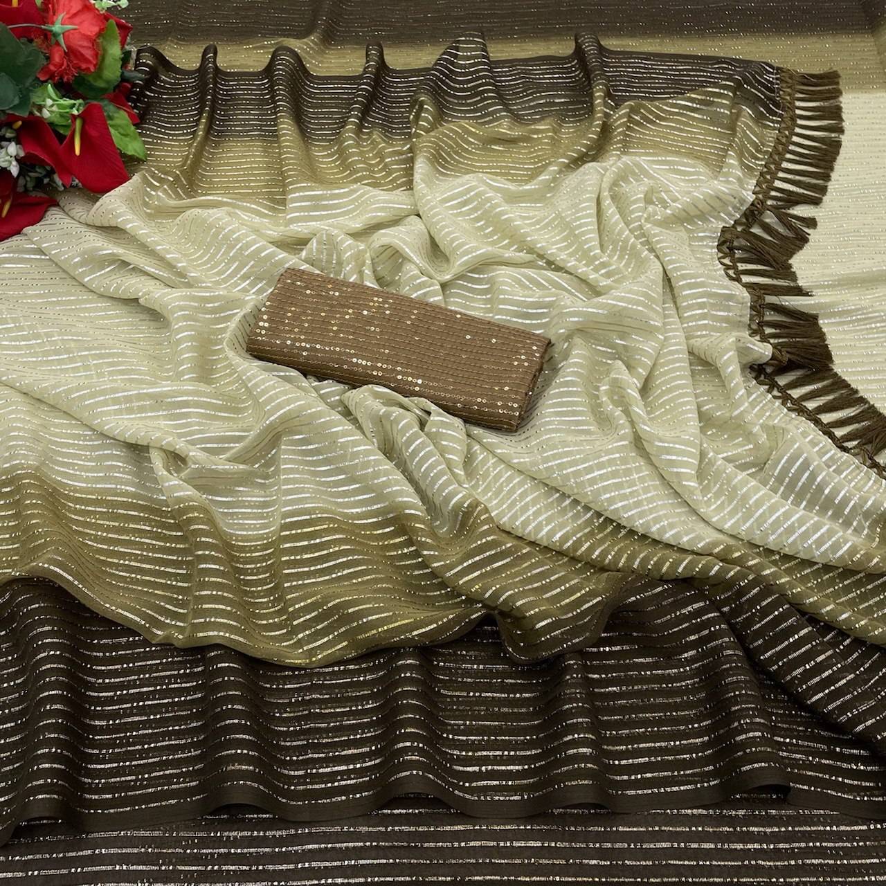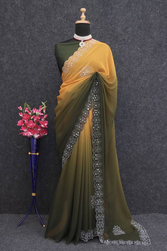 Boasting a timeless charm, this saree features a solid pattern on its body adorned with delicate embroidered edges. The combination of a solid body and intricate embroidery adds depth and sophistication to the overall design. So, whether you're attending a wedding or a festive celebration, this saree's exquisite pattern makes it an apt choice for you.