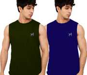 Light Weight Cotton Blend Solid Plain Mens Top Tank Vests Combo Pack. These Sleeveless Mens T-shirts are Ideal for Casual, Daily Wear. Also these men's plain Vest Combo Pack of 2 can be worn during Gym or Exercise. These Vest Armhole Side is Piqued.