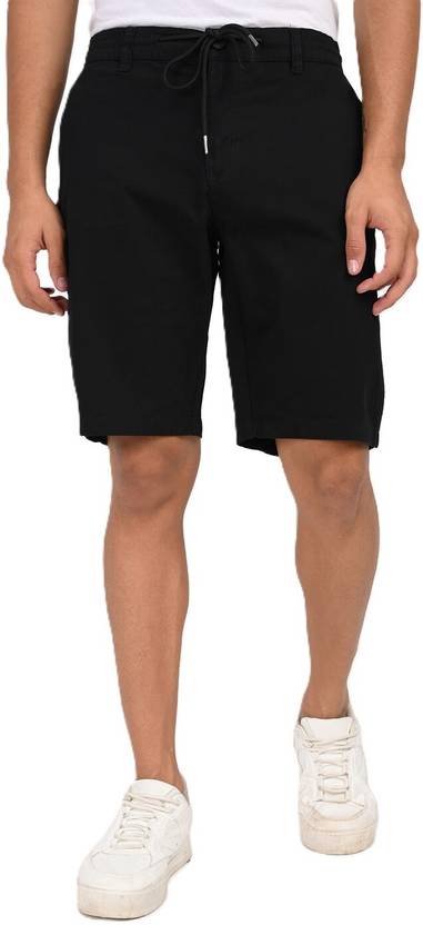 Mechanic Solid Men Black Chino Shorts, Cargo Shorts