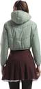 Stay warm and stylish with this women’s solid cropped puffer jacket. Designed with a quilted padded construction, this jacket offers lightweight warmth and everyday comfort. The hooded design provides added protection against cold weather, while the elasticated hem and cuffs ensure a snug fit. Perfect for casual outings, travel, and winter layering.