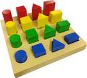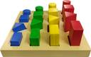 This Geometric Shape Sorter Toy is a Fantastic Way to Teach Shapes, Size, Height, Colors. 16 Geometrical Pegs Can Be Sorted, Counted, Stacked, Arranged and Placed on a Wooden Base in Numerous Ways. Each Shape is Made of Natural Solid Wood and Painted in Bright and Beautiful, Non-Toxic Colors. It Encourages Visual Identification, Organization, Classification, Fine Motor Skills.