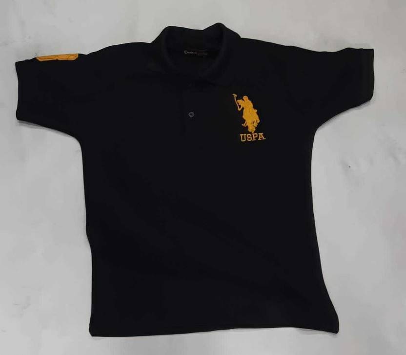 Men Solid Polo Neck Cotton Blend Black T-Shirt