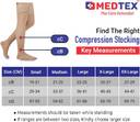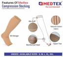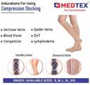 MEDTEX Cotton enriched Compression stockings made of 100% high Quality Cotton and fine yarns which provides guarantee Comfort, Graduated Compression, Strength and durability, effective support and bring relief to tired, heavy and aching legs. The greatest degree of pressure is exerted at the ankle and is gradually reduced towards the knee and/or thigh which provide immediate relief from Pain and Swelling. 100% natural Cotton, Soft, comfortable materials, well-fitting form, Extremely robust, Excellent breathability, High moisture transportation for pleasant wearing comfort, High wearing comfort and high efficiency, Perfect sizing. Latex free, Odour free, No Skin allergy/Itching, Perfect suit for sensitive Skin Specifications: Unisex, Class 2 Compression Level(23mmHg-32 mm Hg), Open Toe, Composition: 35% Cotton, 40% Nylon, 25% Spandex, Length: Thigh length and Knee Length, Available different sizes from S,M,L,XL,2XL,3XL. Packing: 1 PAIR (2Nos) of stockings with a white Socks Aid. Support on Sizing- We provide free replacement in case of Sizing issue.