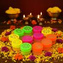 Care Instruction: Avoid contact from water and keep it in safe dry place., Recycled Rangoli Dabbi. Round Multicolor RANGOLI STAMPING STENCIL DABBI., Reusable Rangoli Making Bottles. Easy to Use. Just Fill It Up with Rangoli, Flowers, Pulses. Traditional Art with Modern Day Ease of Use.