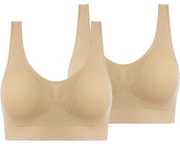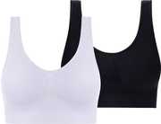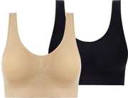 MEEMBOOLI Air Sports Bra Pack of 2 Women Cami Bra Non Padded Bra (Black, Beige)