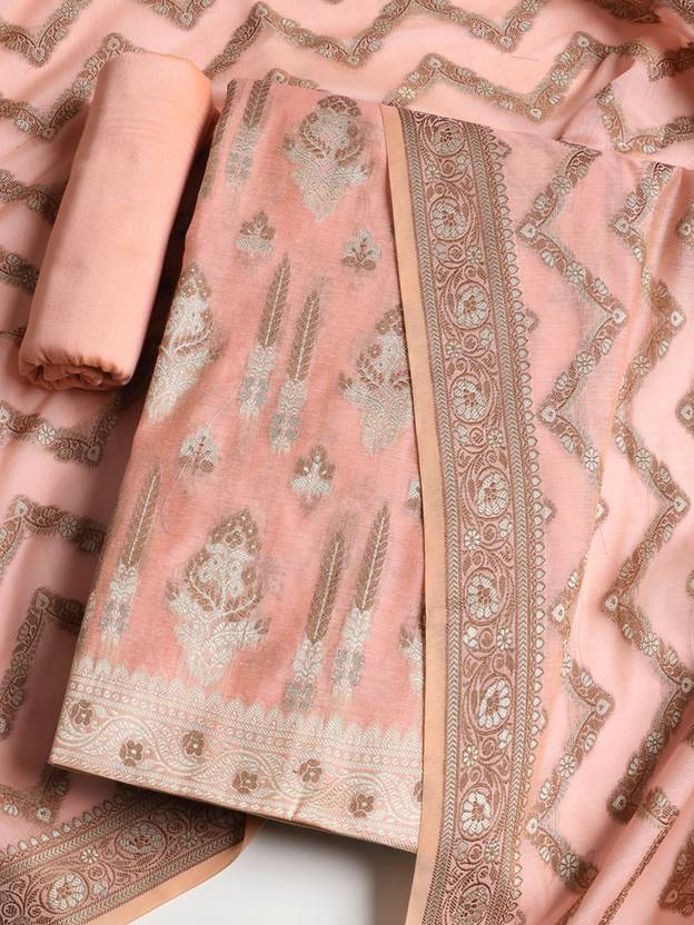 Unstitched Chanderi Salwar Suit Material Printed