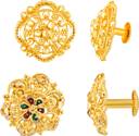 MEENAZ Traditional South Screw Back 1 one gram gold wedding bridal Stylish fancy party wear Ethnic Indian Temple jewellery Studs Meenakari Flower Ear rings for girls women Golden Fancy Micro Antique Brass, Copper, Enamel Stud Earring, Earring Set