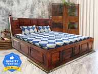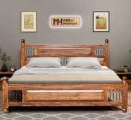 Meera Handicraft A beautiful sheesham wood bed For Bed Room /Guest Room /Hotel Solid Wood(Double) Solid Wood Queen Bed (Finish Color - Rustic teak, Delivery Condition - DIY(Do-It-Yourself))