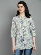 Meesan Casual Regular Sleeves Printed Women Blue Top